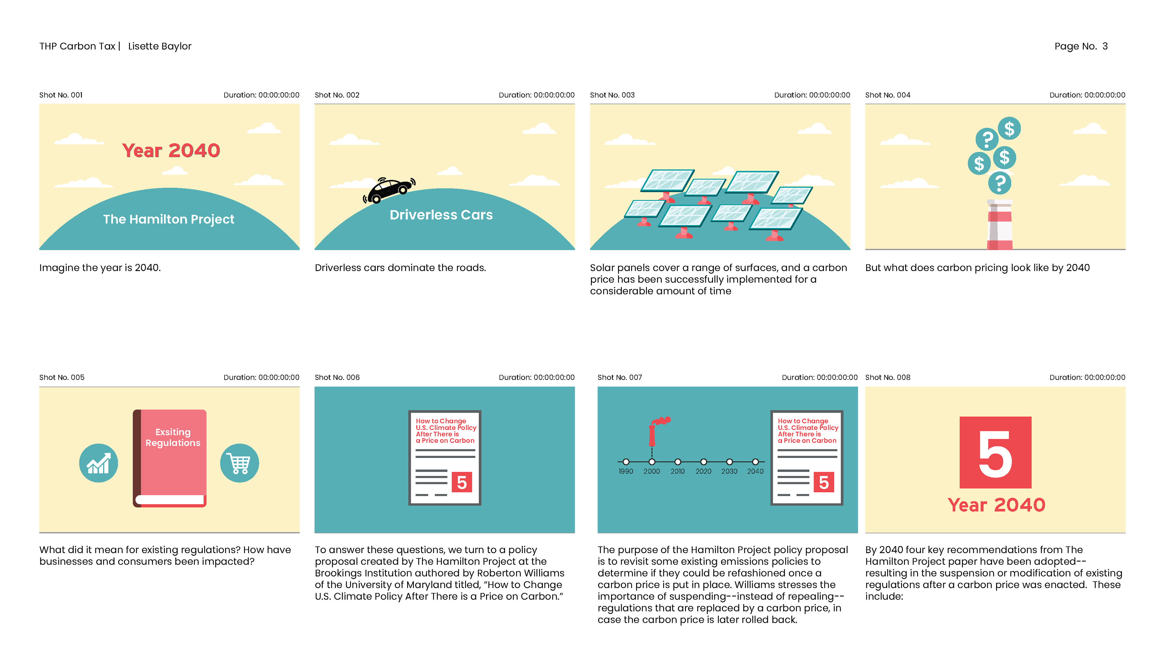The Hamilton Project of the Brookings Institution's staff requested an animated video to launch content in celebration with the 50th Anniversary of Earth Day. After receiving a script, I collaborated with my department's video producer to ideate and storyboard the animation for review. After key stakeholders approved the design, look and feel and expressed story line, I created the digital assets to hand off to the video producer for production.